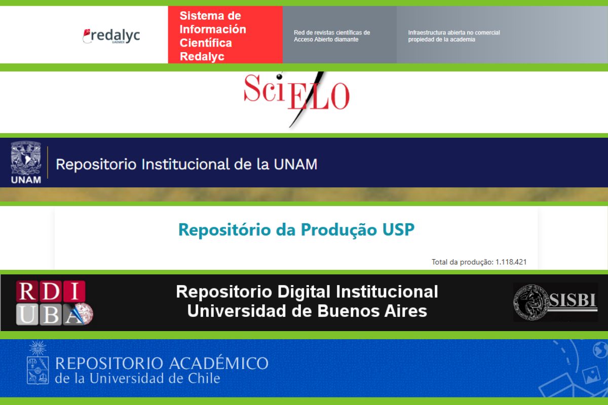 - Geraldine Trujillo. (10 septiembre, 2024). Los 6 repositorios institucionales más famosos de toda Latinoamérica. Paideia Studio [Blog]. https://doi.org/10.62059/paideia.studio.17218